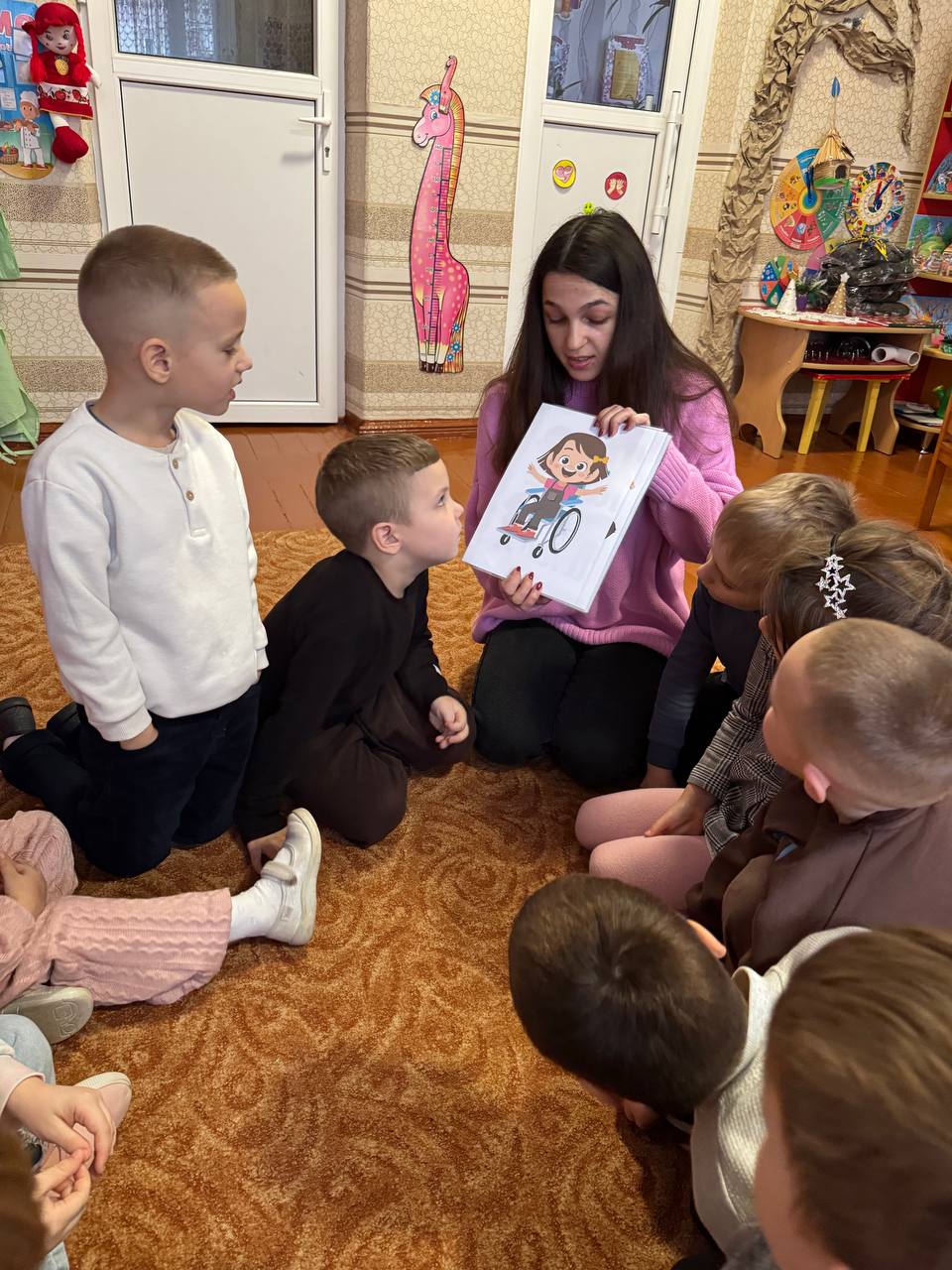 У старшій групі групі "Калинка" та інклюзивній групі "Дзвіночок" практичний психолог Юлія БІГУН провела пізнавально-розвивальне заняття, присвячене Міжнародному дню людей з обмеженими можливостями. Під час зустрічі діти в цікавій та доступній формі дізналися про те, що всі люди-різні, але кожен з нас однаково цінний.
